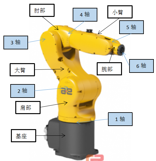 AIR6A六自由度串联工业机器人主要由操作机(本体)、控制柜和示教器三部分组成。