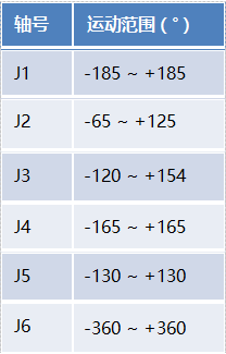 d. 各轴限位。各轴分别设有零点和运动范围。机械限位是为了进一步确保安全,正常情况下,机器人软件设置的运动范围<软限位<硬限位。