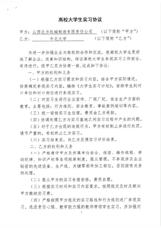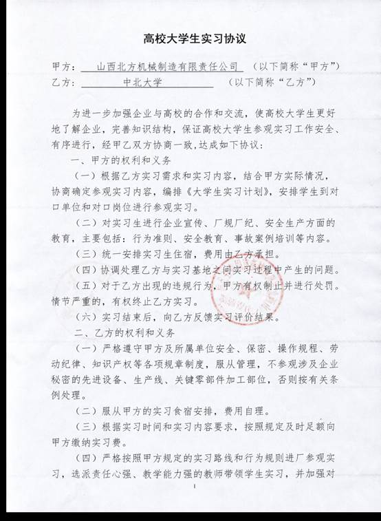 北方机械制造有限公司(国营第247厂)为过程装备与控制工程专业的生产/毕业实习基地,学生在学完在校的全部课程后进行实习,主要了解机械加工的设备、工艺和产品质量检验等过程,完成实习大纲的机械加工单元实习任务。该厂是我专业的主要实习基地,从2004级开始,每年接待我专业学生约150人。