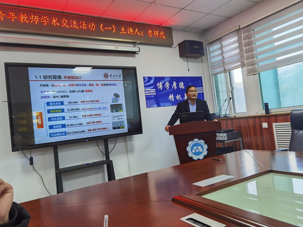 报告中,鲁老师主要介绍了铁素体不锈钢的发展现状;超级铁素体不锈钢的技术不足;实验室创新成果等,同时还就自己如何成功申请国家基金谈了自己心得体会。最后,鲁老师与大家进行了互动交流,热情细致地解答了青年教师的诸多问题,在热烈的掌声中,此次报告圆满结束。