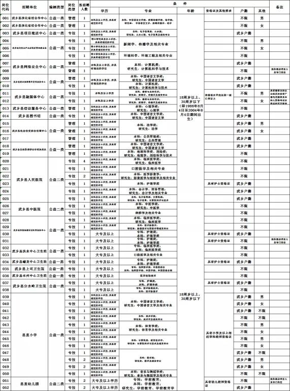 9.各招聘岗位所要求的学历、专业等条件详见《武乡县2022年公开招聘事业单位工作人员简章》(附件1);
