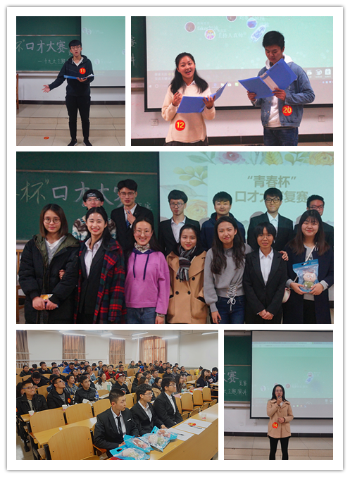 大赛伊始,主持人张根源、向慧琪介绍各位嘉宾以及此次比赛规则。选手们或激昂高亢、或低沉颂吟,围绕“十九大”、“中国梦、“青年”等方面阐述了自己的观点。他们用真情歌颂党的丰功伟绩,抒发对党的炽热情怀,表达了“红心永向党,铁心跟党走”的坚定信念。他们也展现了当代大学生紧随时事政治,保持思想先进性的优良品质。整场比赛中,选手们用富有感染力的精彩演讲打动了评委和在场观众,博得了阵阵掌声,赢得了连连喝彩。经过两个半小时的激烈角逐,口才大赛复赛在热烈的掌声中取得了圆满结束。