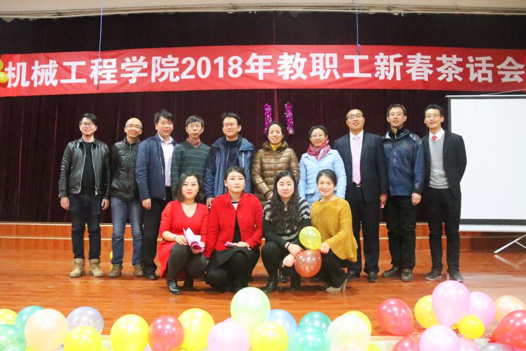 暖心同行,携手元旦,12月29日晚,机械工程学院2018年教职工新春茶话会于老年活动中心隆重举行。学院党委书记张清、院长祝锡晶、副院长苗鸿宾、副院长曾志强及党委副书记兼副院长李秀玲出席晚会,与全院教职工携手共跨新年。