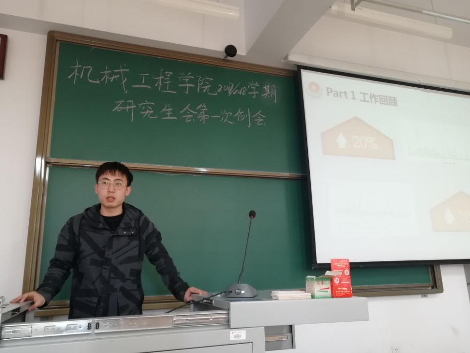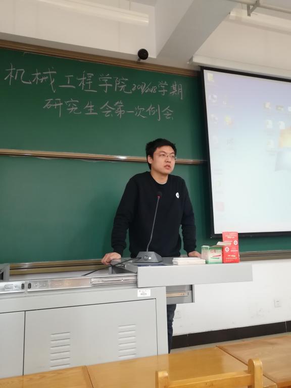 2018年3月8日上午9点,机械工程学院新学期研究生会第一次例会暨中期工作汇报在15408举行。会议由机械工程学院研究生会主席刘泽宇主持,我院科研科副科长赵韡老师、研究生辅导员苗慧老师及研会全体成员参加了此次例会。