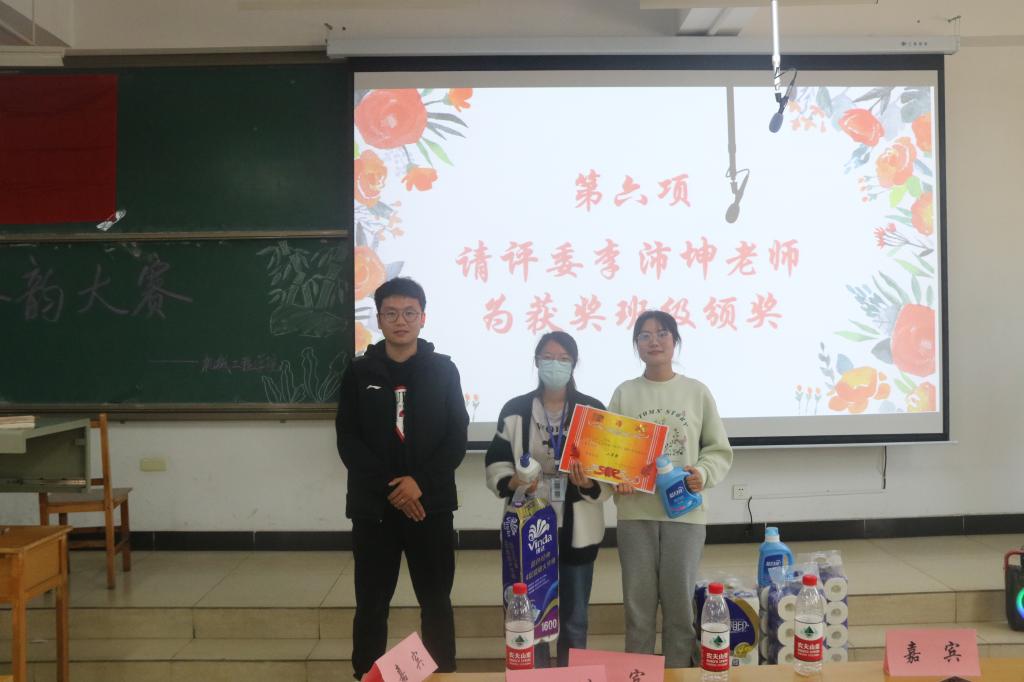 决赛伊始,参会人员共同合唱共青团团歌为比赛预热,接着各位优秀宿舍代表通过他们出色的答辩及精彩的幻灯片向我们展示了团结友好的宿舍关系、温馨整洁的宿舍环境,深深吸引评委与观众。在评委评分过程中,主持人通过有奖问答来活跃现场气氛,并丰富了大一新生对学校的了解。同时,吉他演奏、深情独唱等丰富多彩的才艺展示尽显我院学子的多才多艺。经过评委的严谨选拔,评出一等奖、二等奖、三等奖宿舍,并由老师为获奖宿舍颁发奖品。最后,李沛坤老师进行指导与点评,李老师首先祝贺了获奖宿舍,并对他们的前期准备与后期展示工作表示肯定,李老师表示舍韵风采大赛的目的在于让同学们亲自动手,构建宿舍文化,营造和谐宿舍氛围,同时李老师希望全体同学都能够将好的生活习惯保持下去,为学院优良舍风的创建贡献力量。