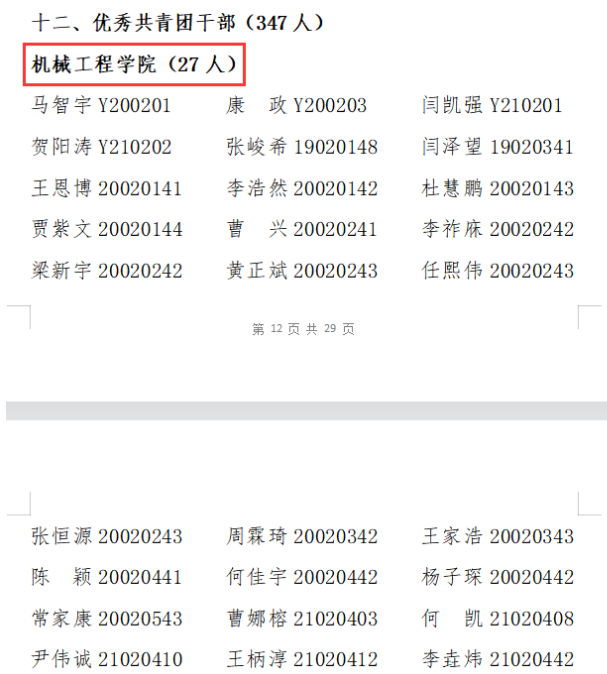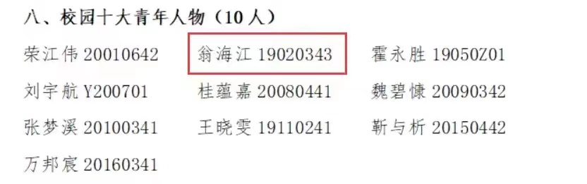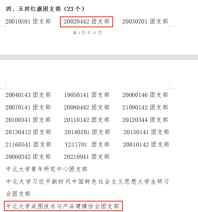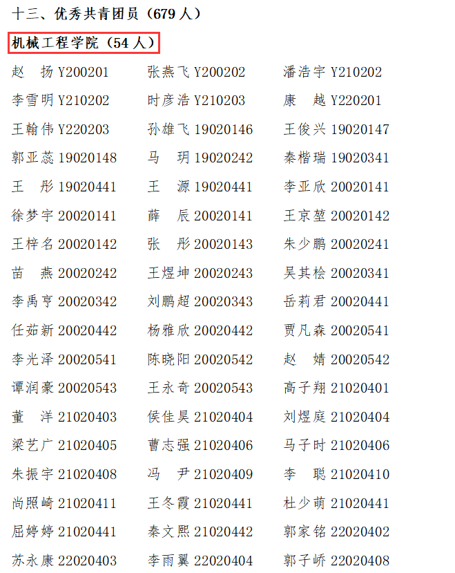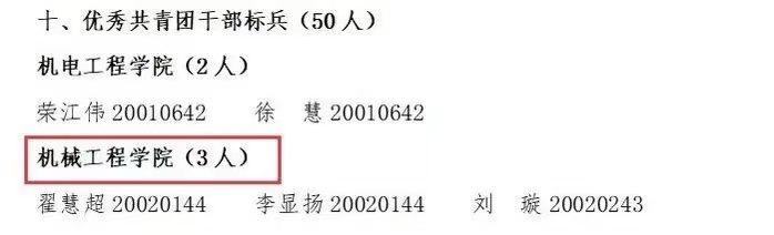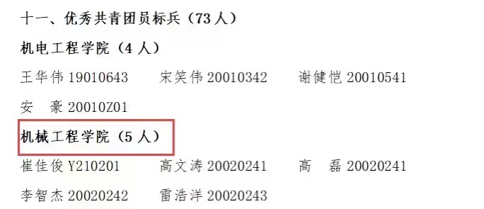 集体荣誉方面,我院团委荣获中北大学“五四红旗团委”荣誉称号,中北大学成图技术与产品建模协会团支部及20020442团支部荣获“五四红旗团支部”荣誉称号;个人荣誉方面,我院19020343班翁海江同学荣获“校园十大青年”称号,11位同学获得校级优秀团干、团员标兵称号,27位同学获得校级优秀团干称号,56位同学获得校级优秀团员称号。