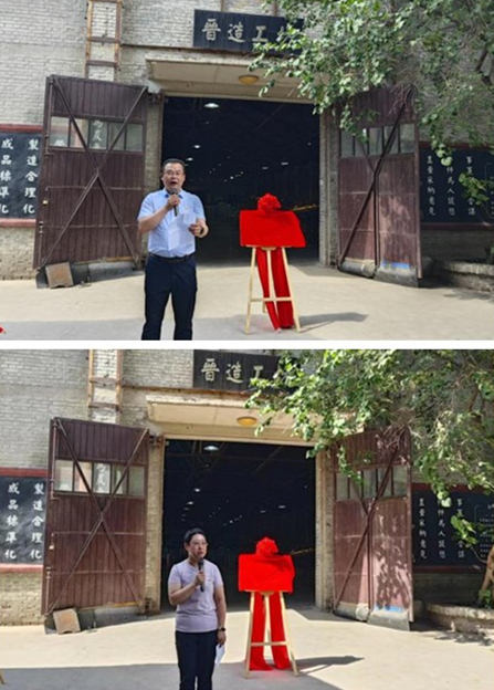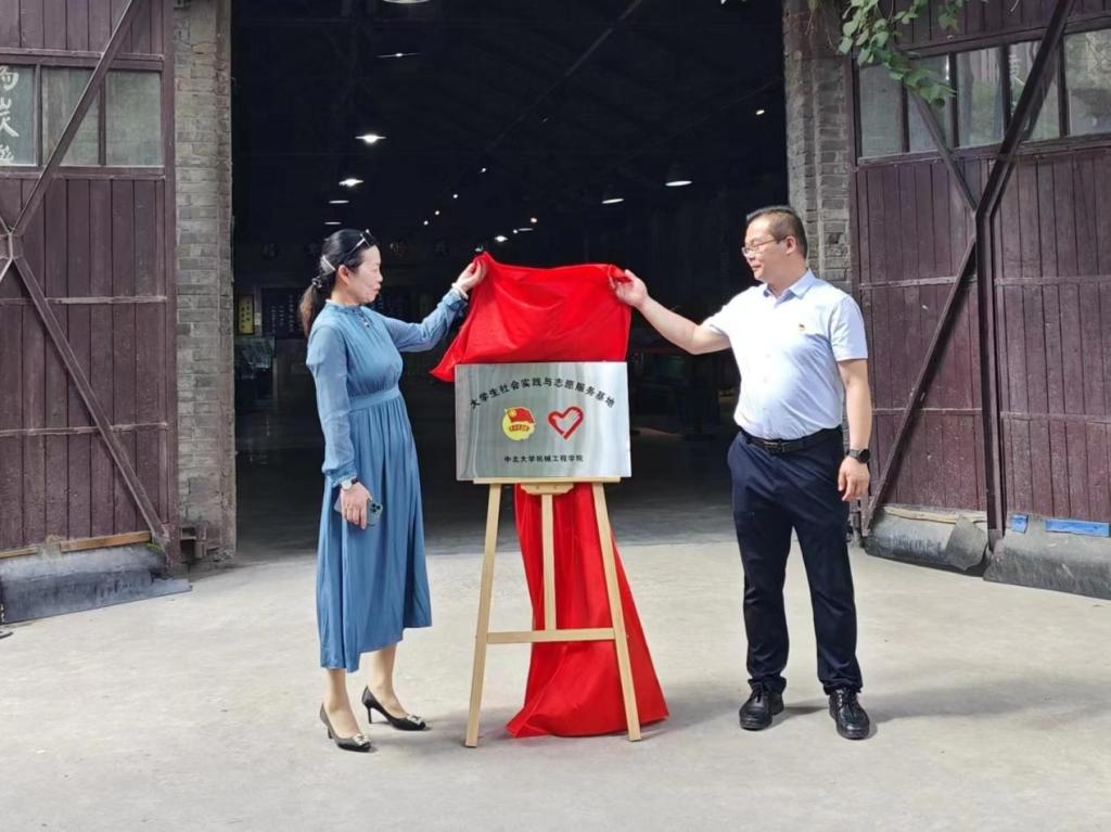 仪式由李秀玲副书记主持。孙旭东书记在揭牌仪式致辞中表示,1898太原兵工厂文化产业园与中北大学薪火相传的军工文化十分契合,介绍了建立大学生社会实践与志愿服务基地的目的和意义,表达了对未来双方合作的美好期望。随后,孙旭东书记与中兵(太原)兵工文化发展有限公司党委副书记张欣共同为大学生社会实践及志愿服务基地揭牌。