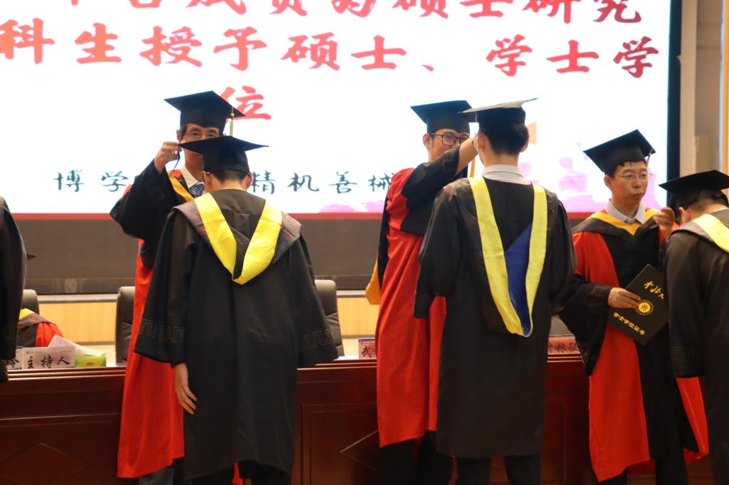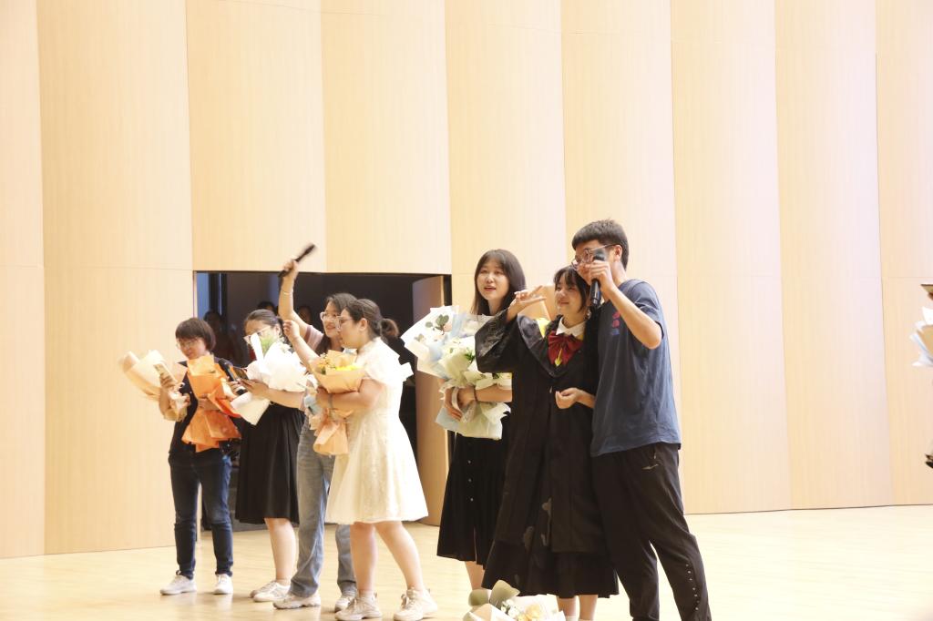 大会第二部分为拟学位授予仪式,由院学位分委员会成员为2023届毕业生孟小玲等5名同学拟授予博士学士学位,为于守银等149名同学拟授予硕士学位,为黎炳琪等779名同学拟授予学士学位。毕业生们依次走上前台,接受老师们授予学位证并合影留念。大会最后掀起高潮,与会成员一起观看毕业季短片《勇气》,全体毕业班班主任老师登台献上歌曲《勇气》,在离别的不舍与对未来的希望中,全体老师起立目送毕业生离场,本次大会圆满结束。