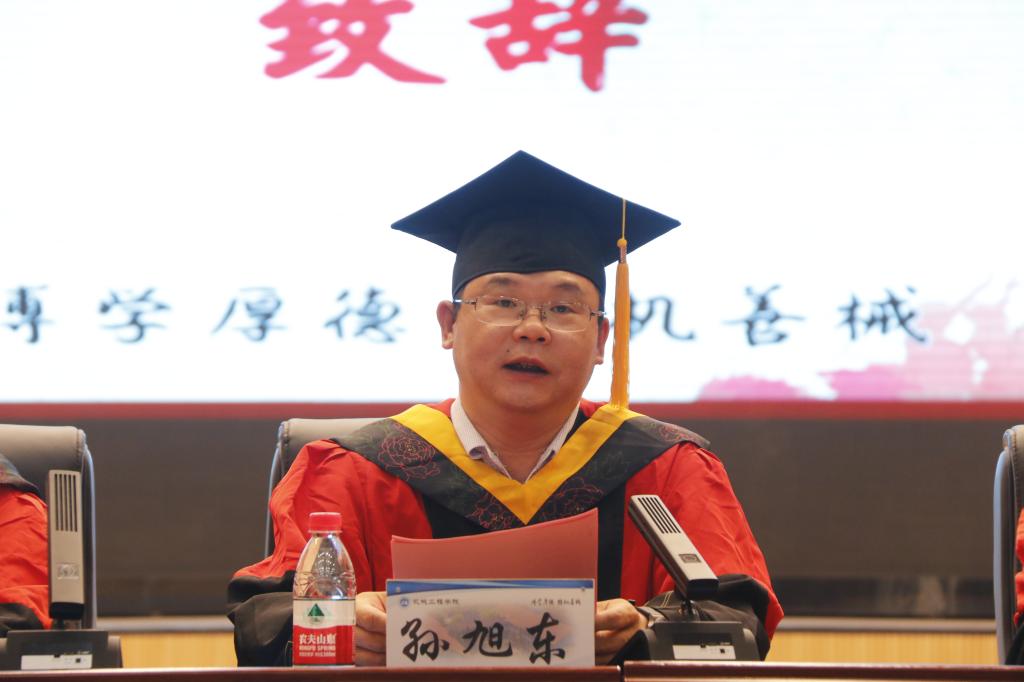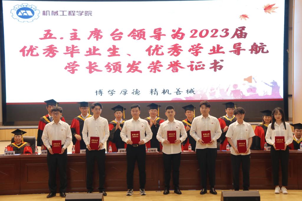 本次大会分为两个部分,第一部分为毕业典礼仪式。典礼由学院党委书记孙旭东进行开场致辞,孙书记寄语同学们要尽显为校争光的“青春范儿”,彰显“军工报国”中北机械人的使命担当,践行“致知于行”的校训,成为新时代新征程上的先锋力量。随后主席台领导们分别为2023届优秀毕业生、优秀学业导航学长颁发荣誉证书,为学业领航学长和企业领航学长代表颁发聘任证书,为2023届校友联络员代表颁发聘书并赠送学院纪念品。接着研究生、本科生毕业生代表杨泞宁、潘雨晖与教师代表鲁辉虎依次上台为毕业生们送上临别赠言。典礼最后一项由祝锡晶院长进行总结发言,他希望同学们要传承中北人服务国家、科技报国的红色基因,带着“博学厚德、精机善械”的院训精神奔赴祖国各地,向国家报到,向社会报到,用青春书写奋斗故事!