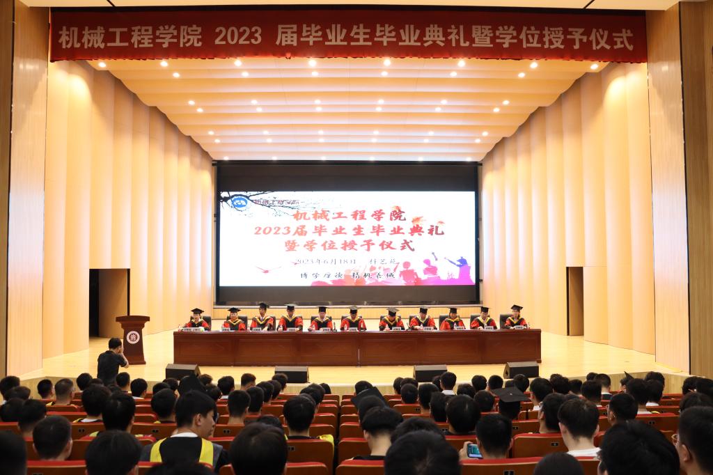 2023年6月18日16点,机械工程学院在科艺苑举行2023届本科生毕业典礼暨拟学位授予仪式。学院党委书记孙旭东,院长祝锡晶,副院长苗鸿宾、曾志强以及院学位分委员会部分成员叶林征、杜文华、武文革、赵俊生、黄晋英、梅林玉出席本次典礼,全体毕业班班主任和2023届毕业生参加大会。本次大会由学院党委副书记李秀玲主持。