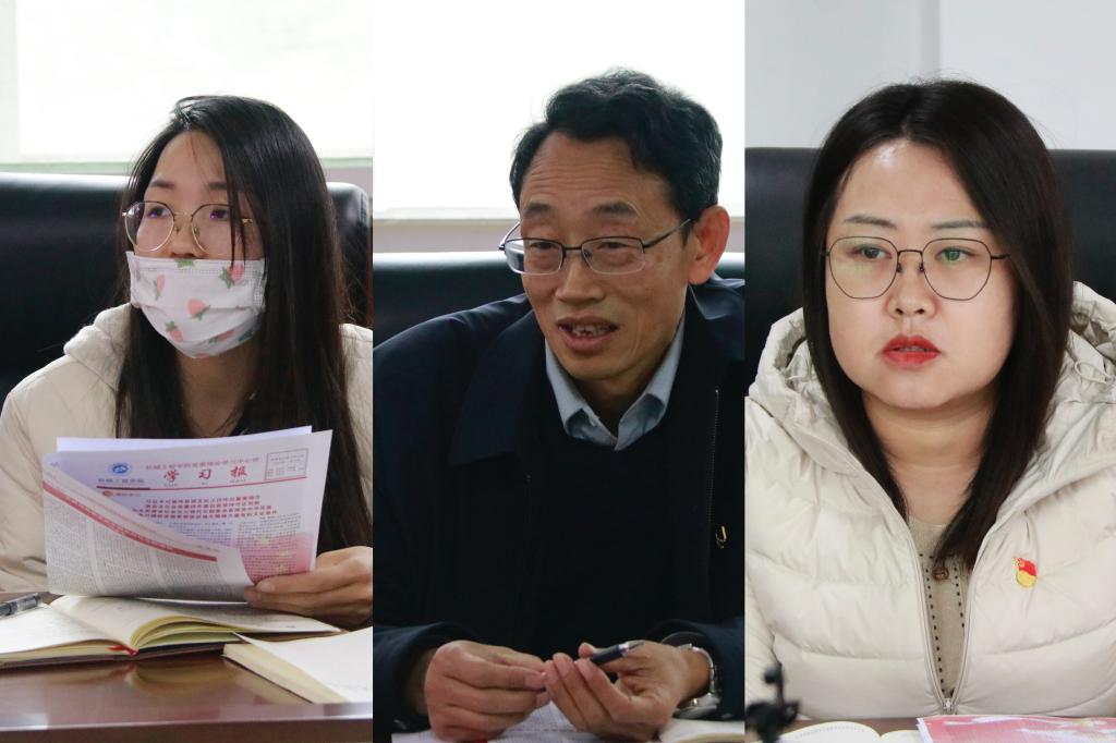 领学部分结束后,学院党委理论学习中心组成员三名同志就学习内容谈了心得体会。辛志杰同志从学习习近平总书记视察浙江、江西讲话内容中有所感悟,他结合学校学院近年在南方沿海城市招生情况,认为想要提升办学影响力,学校学院应该进一步打造优势学科名片,根据时代的变化找准人才培养的落脚点。王瑾同志认为习近平总书记对宣传思想文化工作的重要指示高屋建瓴,给高校宣传文化思想工作的开展指明了方向。她认为当下要认识到意识形态工作的重要性,要培育一支舆情监管与引导的学生骨干队伍,筑牢意识形态防线。同时她表示下一阶段要以团支部为单位,开展全院范围的文化自信学习,深入学习领会习近平总书记关于文化建设的思想、观点、论断。李红丹同志表达了对人才培养当中的国际交流合作的相关看法,她希望学校能够为学生提供去“一带一路”沿线国家访学交流的机会,拓宽学生的国际视野,感受中国的大国风范。