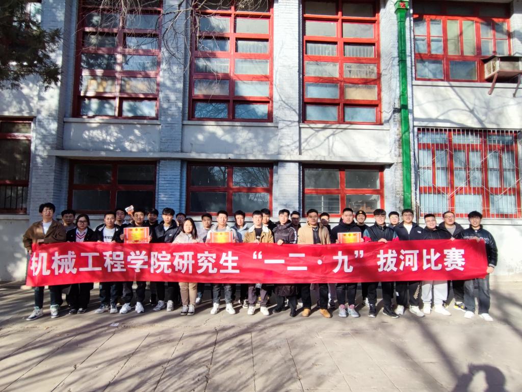 为纪念“一二·九运动”88周年,丰富研究生校园文化生活,机械工程学院研究生会于2023年12月5日在工字楼前举办了纪念“一二·九运动”拔河比赛,8个研究生班级共计120人参加比赛。