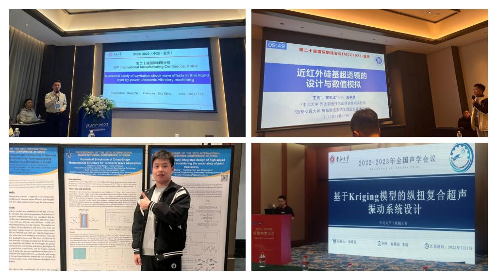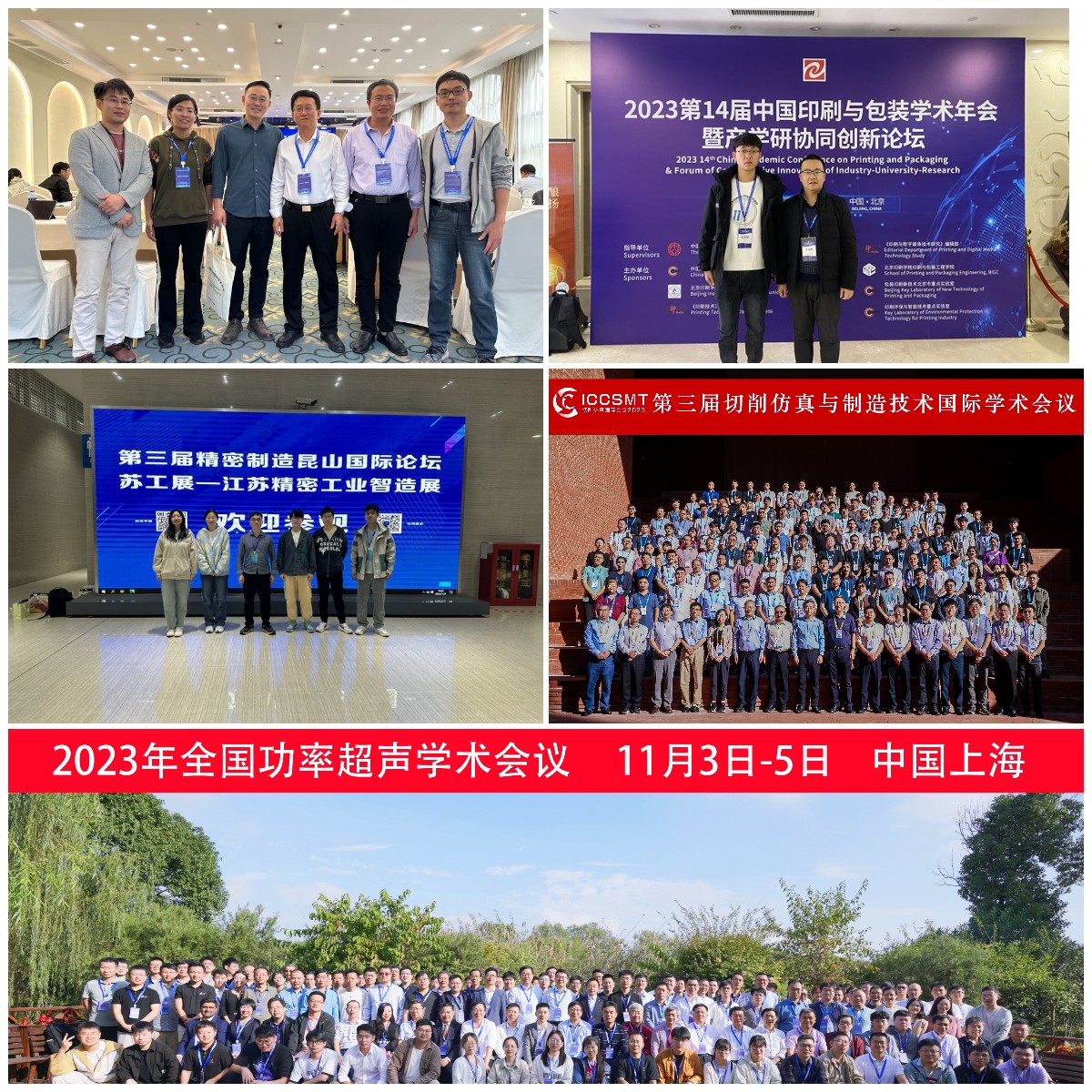 2023年11月-12月,秦慧斌副教授、黎相孟副教授、于瑞恩副教授、李婧博士等师生先后参加了2023年全国功率超声学术会议、第三届切削仿真与制造技术国际会议、2023第14届中国印刷与包装学术年会暨产学研协同创新论坛、第二十届国际制造会议、2023年全国特种加工技术创新发展论坛会议。会上做了《基于炭黑/石墨烯功能油墨的印刷柔性双模态传感器制备及性能研究》《numerical study of cavitation shock wave effects in thin liquid layer by power ultrasonic vibratory machining》《Investigation on simulation design and preparation technology of near infrared silicon based metalens》《Numerical Simulation of Cross-Shape Metamaterial Structure for Terahertz Wave Absorption》等口头学术报告。
