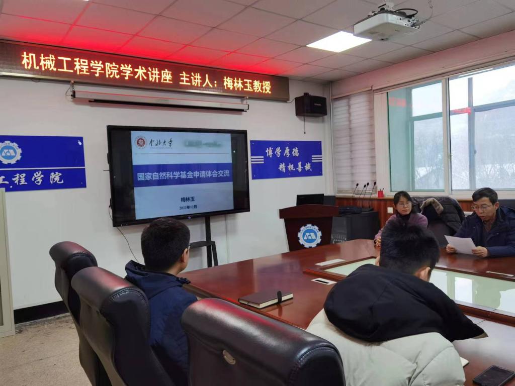 2023年12月14日下午,在机械工程学院410会议室,召开了机械工程学院2024年国家基金申报辅导学术讲座,年青教师与部分研究生参加了会议,会议由机械工程学院科研副院长苗鸿宾教授主持。