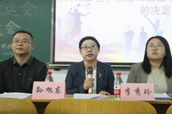 学院党委副书记李秀玲宣读《机械工程学院第四十二届运动会表彰实施办法》,随后运动员代表王雅茹发言,表示要在本次运动会上展示向上的精神面貌与昂扬的斗志,力争取得优异的成绩。运动员代表发言后,全体参会人员观看了第四十一届运动会纪念短片与本届运动会动员视频,回顾了上届运动会队员们取得的骄人成绩与本次备战的精彩镜头,把大会气氛推向高潮。随后全体运动员集体宣誓,要发扬敢打敢拼的精神,不畏困难,永远向前。大会最后,学院党委书记孙旭东进行动员讲话,孙书记表示希望同学们通过对运动会的筹办、准备、训练、比赛展示二院人的风采与新时代大学生群体的蓬勃朝气。