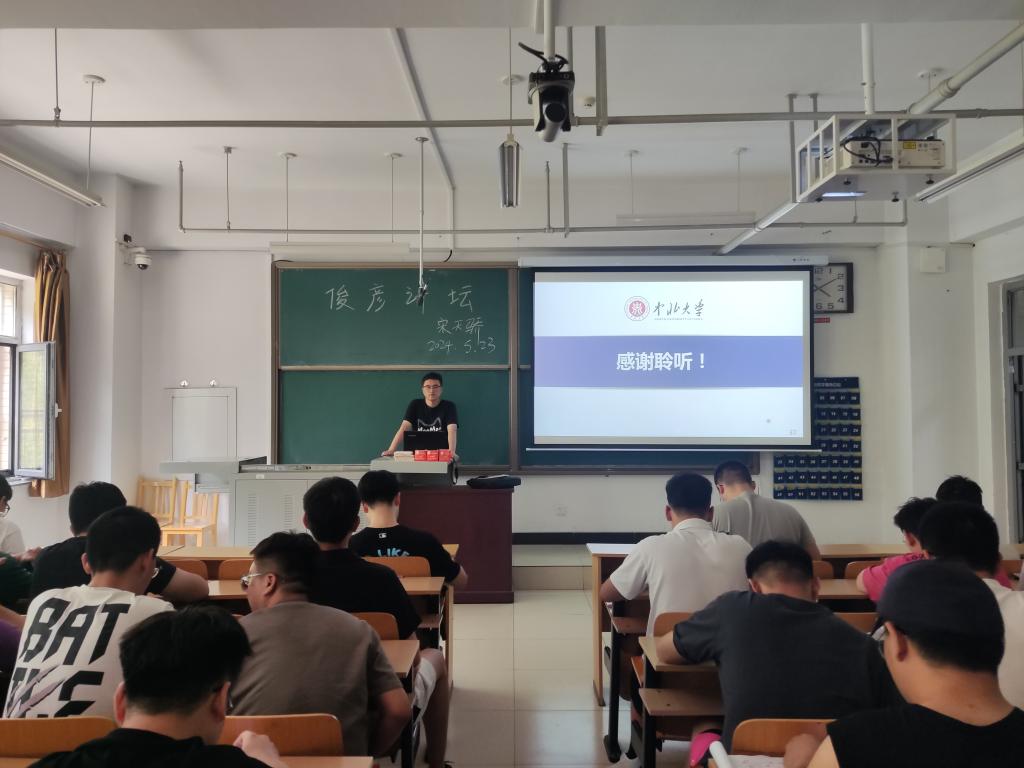 2024年05月23日下午15:30,机械工程学院在教室15101H举办了研究生俊彦讲坛。本次讲座邀请宋天骄老师主讲,院团委副书记苗慧老师主持。各学院研究生参加了本次讲座。在研会各部门的共同努力下,本次讲座顺利开展。