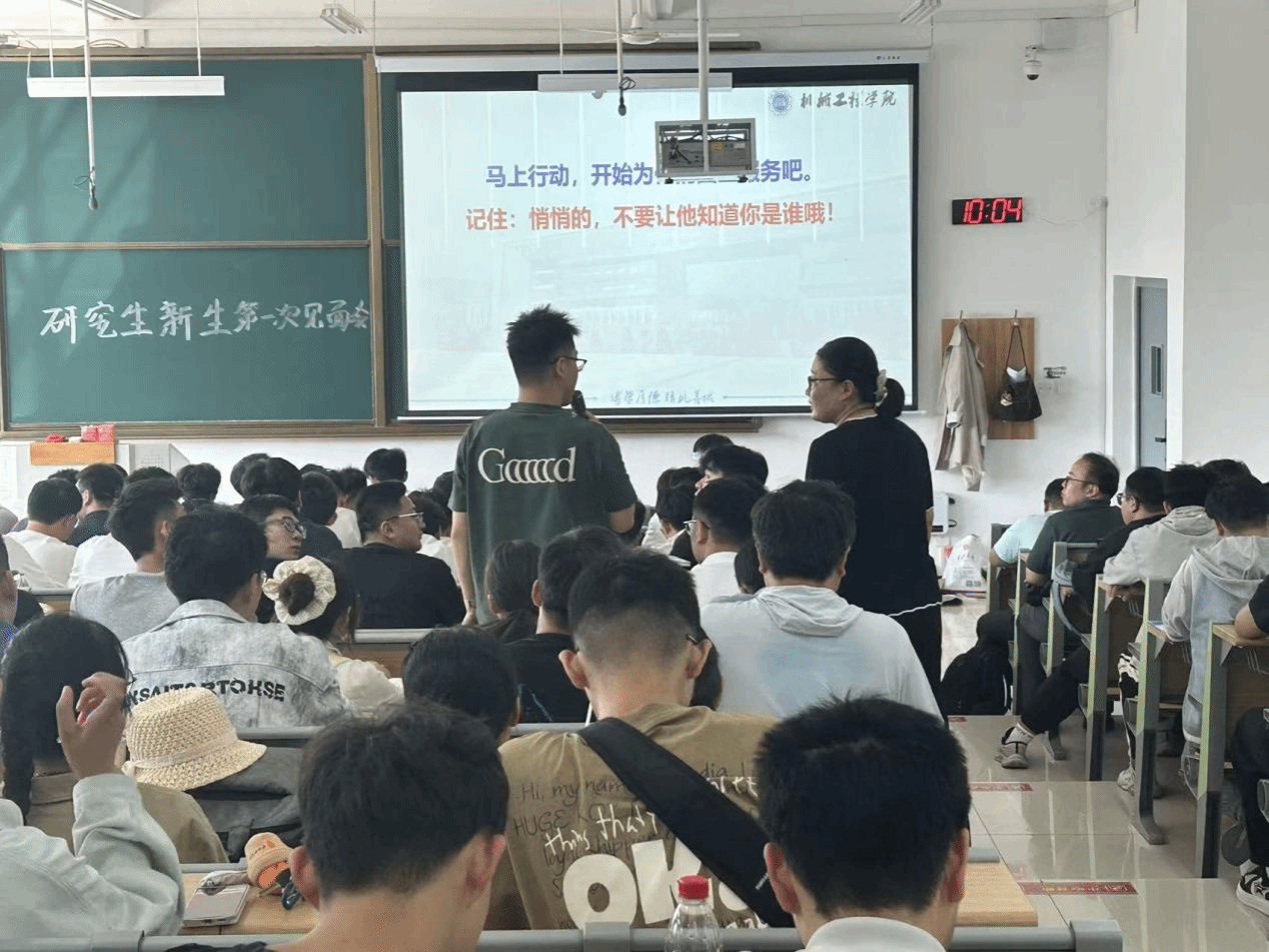 2025年9月14日机械工程学院机械工程学院研究生第一次见面会在机械大楼17105教室举办,本次班会由院团委副书记苗慧老师主持,全体硕士研究生新生参与。