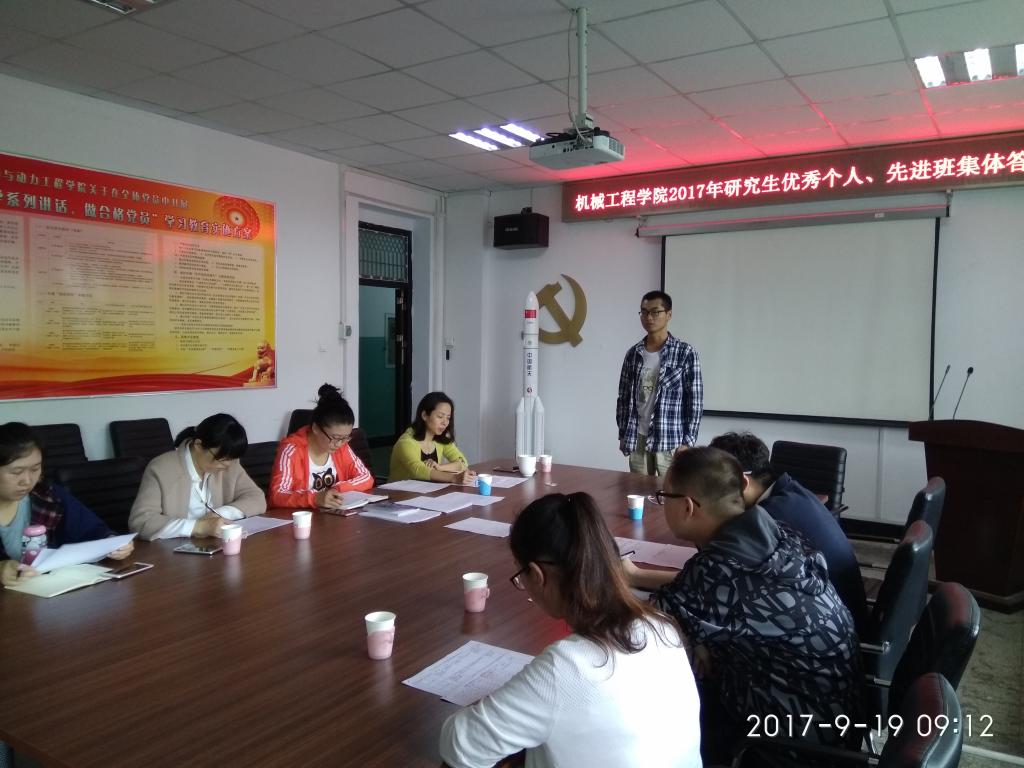 9月19日上午9点,我院2017年度研究生优秀个人、先进班集体答辩会在德怀楼410会议室举行。院党委书记张清老师、科研科科长方群玲老师等四位老师及研究生代表参加了本次评选工作。