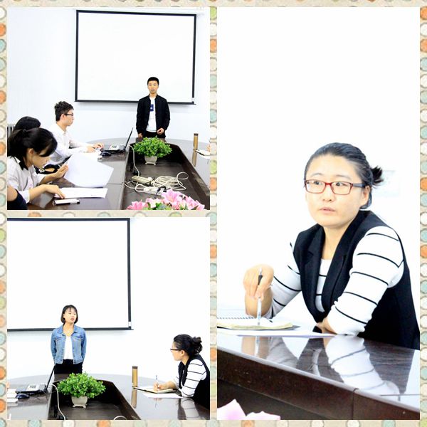 第二部分:纳新。首先各部长进行自我介绍及陈述相关工作职责。接下来是新同学的竞选答辩。每个竞选的同学就自身的特长、竞选的部门等进行了陈述,老师及研会干部对其进行了针对性的提问。