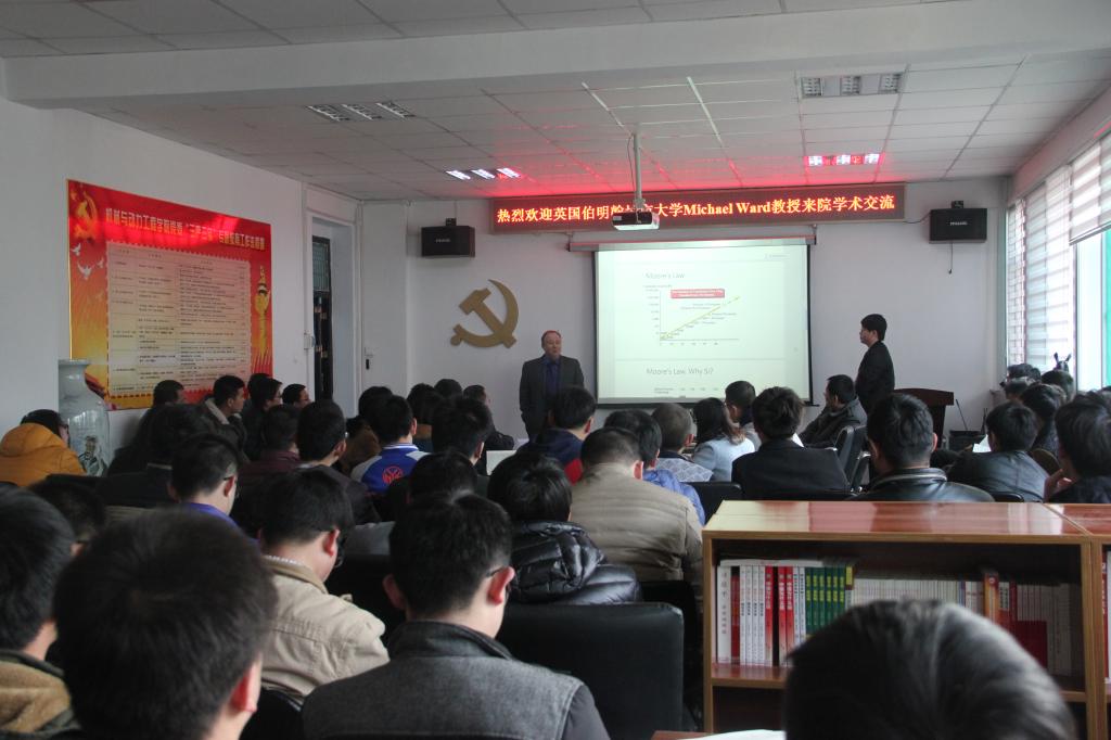 3月15日下午四点,英国皇家号与雷达研究院高级研究员、科学官、英国伯明翰城市大学Michael Ward教授应邀到我院参加学术交流活动。学术交流会议在德怀楼410进行,院长王俊元教授主持本次会议,学院郑智贞书记及部分教师、研究生也参加了此次交流会议。