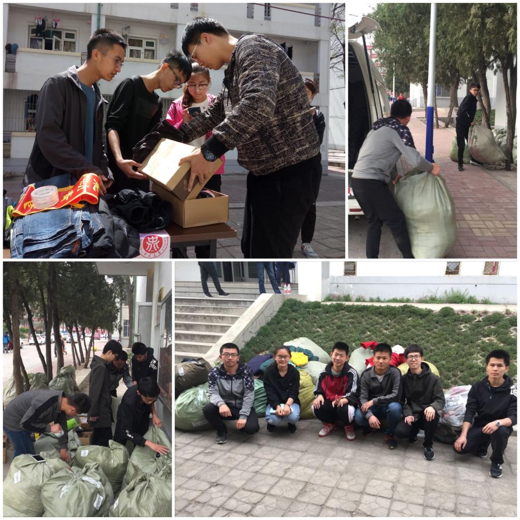 为了响应能源与动力工程学院发起的捐衣活动主题“衣山化衣善,真情暖人间”,4月14日至15日,机械工程学院青志部于文瀛2号和9号楼设置捐衣活动站点,两日共收到1120件衣物,124双鞋子。