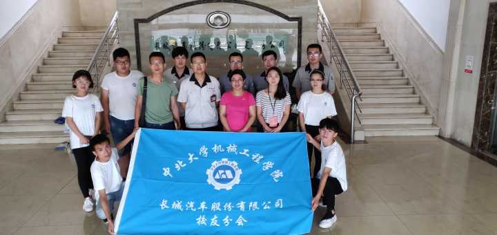 座谈结束后,在张鹏主任的带领下我们走进了关键零部件生产车间,去实地参见生产过程。在偌大的车间中,我们被一眼望不到头的流水生产线所震撼,也为长城打破国外技术壁垒自主生产出涡轮增压器而骄傲,但当我们了解到车间内动辄成百上千万的高精尖机床绝大多数为进口设备时,我们也深感重任在肩,我们也应为民族制造业的发展贡献力量。参观结束后,李秀玲书记和两位老师给我们开一次简要的例会,例会上李老师就前期实践调研过程中的问题以及我们作为后备干部出现的问题提出了改进意见,同时他要求我们将此次实践调研活动的过程用心总结,拿出一份满意的答卷向全院师生展示,最后她再次提醒我们注意安全确保后续实践过程顺利进行。例会结束后几位老师即将踏上去定州的行程,临行前,未来加强在长城中北校友的联系,也为了促进长城与中北的深入合作,学院在长城成立了中北大学机械工程学院长城汽车股份公司校友分会。