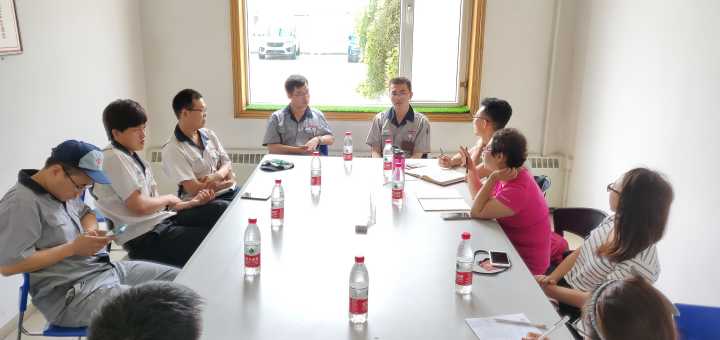 实践队一行得到了定兴分公司零部件车间主任张鹏和人力资源赵部长的热情接待,在安排好实践一行的住宿后,实践活动再次以座谈会的形式拉开帷幕。座谈会开始李书记简要介绍了实践队本次行程的总体安排,本次实践调研活动的目的意义,同时表达了希望在长城成立驻厂校友分会的意愿,也对参加座谈的校友提出了再次提升学历的希望。座谈交流中,学院05届优秀校友、零部件车间主任张鹏结合自身在长城13年的成长经历,向在场的实践队师生们分享了自己在单位中从一个普通员工成长为中层干部的点滴事迹,13年中他几乎干遍了单位内的各类岗位,从技术跨界财务,从车间走向讲台,从员工干到中层,他用他的经历告述我们要学会自主学习,要勇于挑战自己,要学会坚持不懈,在场的每位同学都被他的事迹所深深触动,在心中暗自敬佩的同时也逐渐明晰了自己奋斗和努力的方向。随后参加座谈会的三位校友也结合自身工作的经验,提醒同学们在校期间要重视英语的学习,要学好自己的专业知识,要提升自身的综合素质,在走向工作岗位的时候要看重企业发展平台,看淡薪资待遇水平;要注重一线车间历练,避免理论与实践脱节;要树立终身学习观念,杜绝故步自封思想。座谈会在校友与实践队的热烈交流中落下帷幕,队员们在最近几天的座谈交流中,通过校友们一次次分享的故事,表达的观点,提出的希望,都在不断充实与提升自己,也在不断的明确自身目标,为将来成长为行业所需的人才积蓄力量。