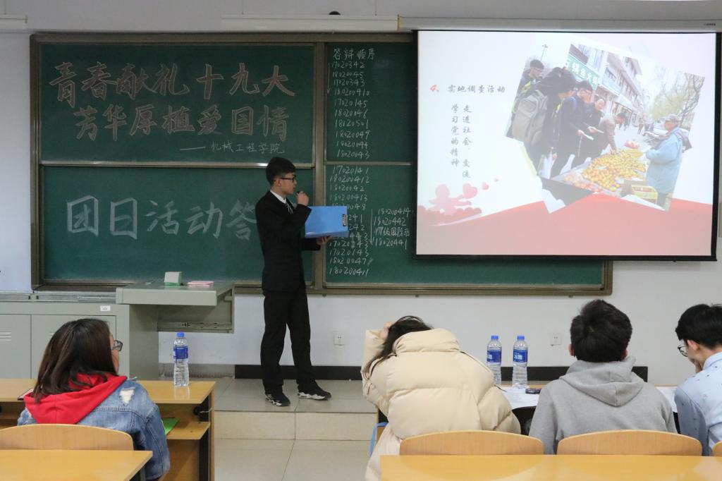 为深入了解十九大精神,培养广大团员青年的爱国情怀,11月27日下午,机械工程学院在15208H举行了主题为“青春献礼十九大,芳华厚植爱国情”的团日活动答辩。院团委学生会部长级以上学生干部担任本次初赛的评委,17级、18级各团支部代表参与了本次答辩。