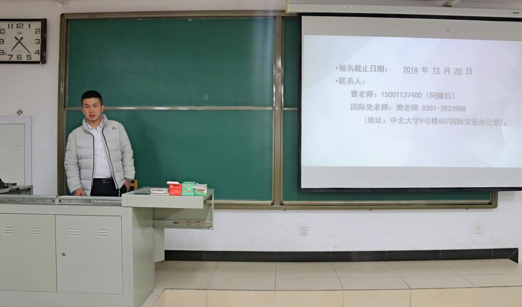 11月29日下午7时,由中北大学国际交流合作处举办的波兰高校交换生项目宣讲会在15301召开。来自机械学院的数名同学参加了本次宣讲会,国际交流合作处曹老师向同学们介绍了该项目。