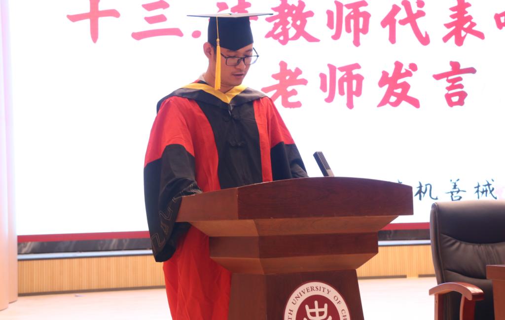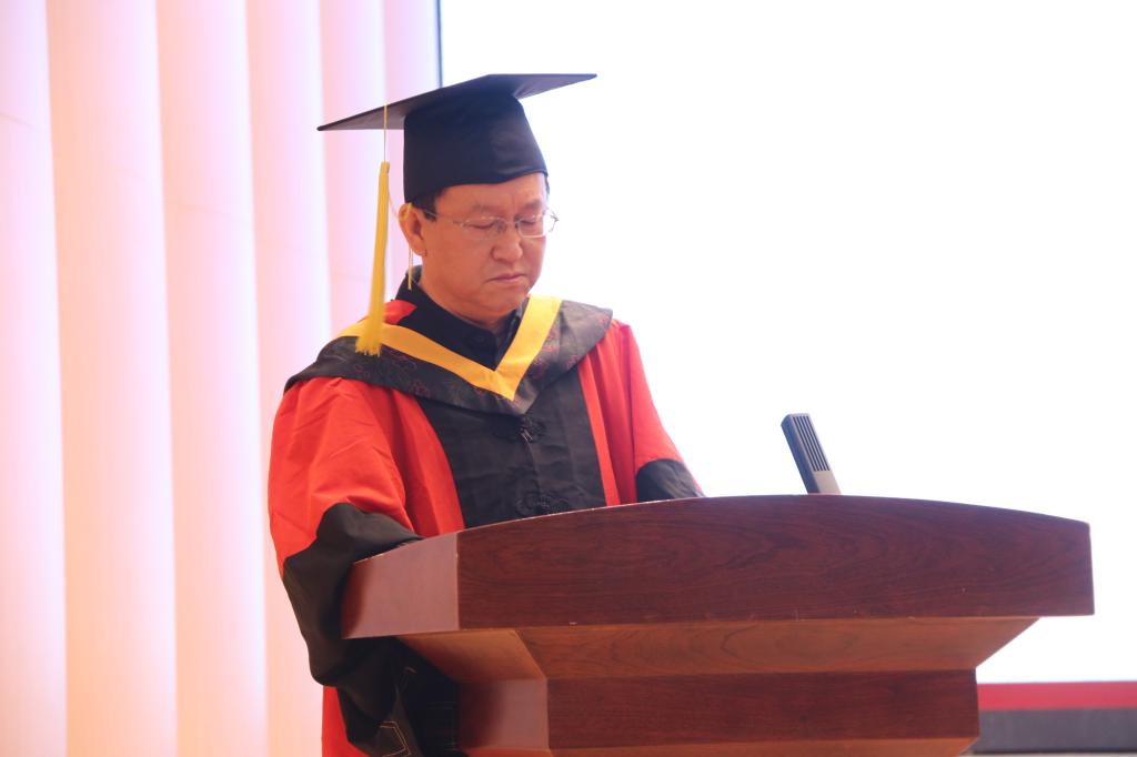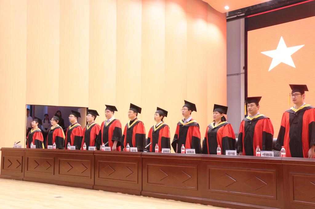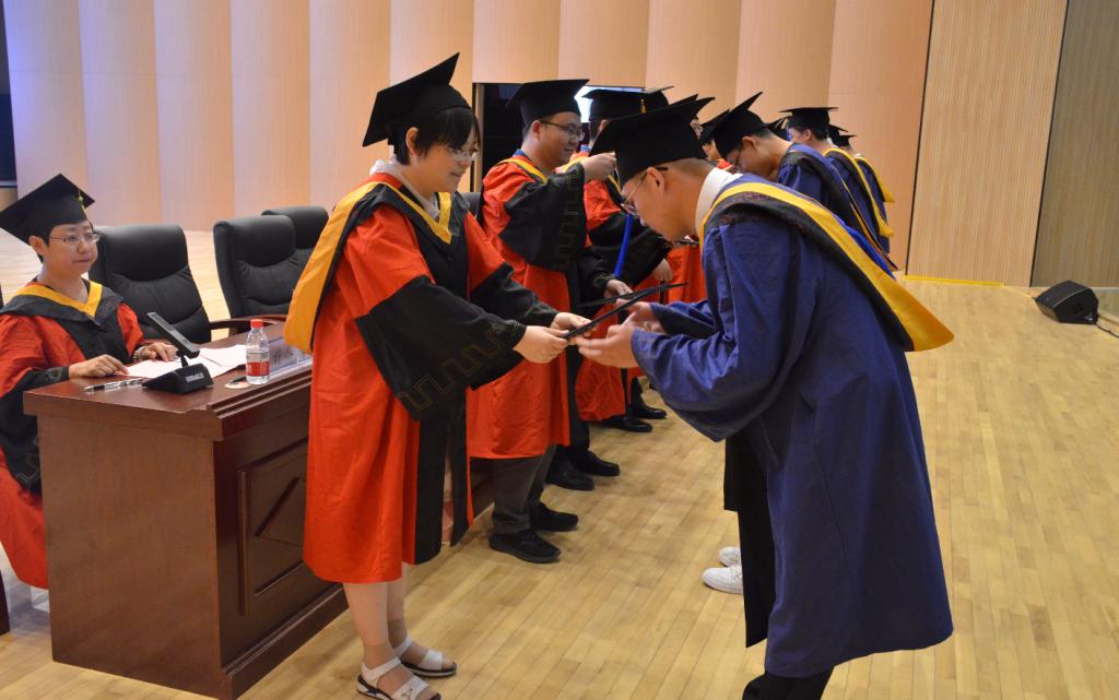 典礼第二部分为拟学位授予仪式,祝锡晶院长,苗鸿宾副院长、曾志强副院长分别宣读了博士、硕士、学士拟学位授予的决定,在校毕业生们走上前台,接受老师们为其送上最诚挚的毕业祝福并合影留念。拟学位授予仪式后,现场播放了学院老师为同学们精心录制的毕业寄语,丁培燎同学用一首《凤凰花开的路口》献给自己挥洒了青春的校园,同学们热泪盈眶,拥抱道别,现场气氛温馨、感人。毕业典礼在全场大合唱校歌《再铸辉煌》中圆满结束。