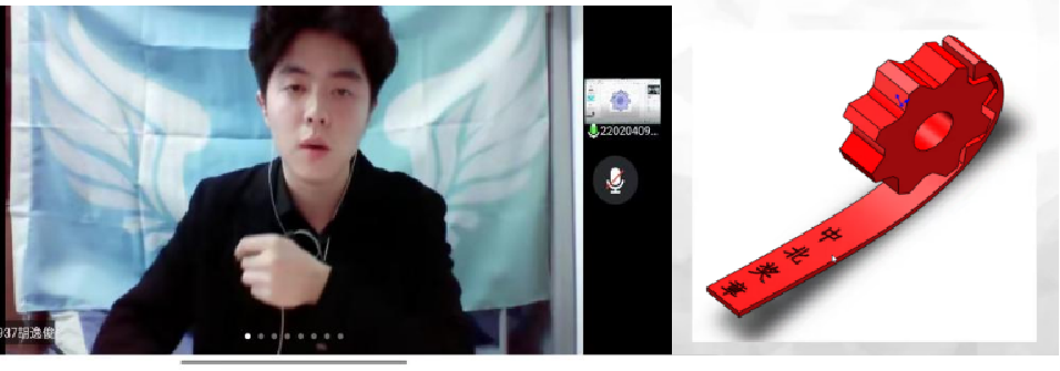 大赛包括梦想班级规划书制作,班旗设计及线上展示三部分。线上展示部分,参赛班级将各自班旗的设计理念与设计过程、梦想班级规划、班级制度、班级特色等向评委与观众娓娓道来。20220409班级同学用SolidWorks设计了以班号为载体,同时包含班级建设理念与期望的班旗,收到大家一致好评,最终荣获一等奖。