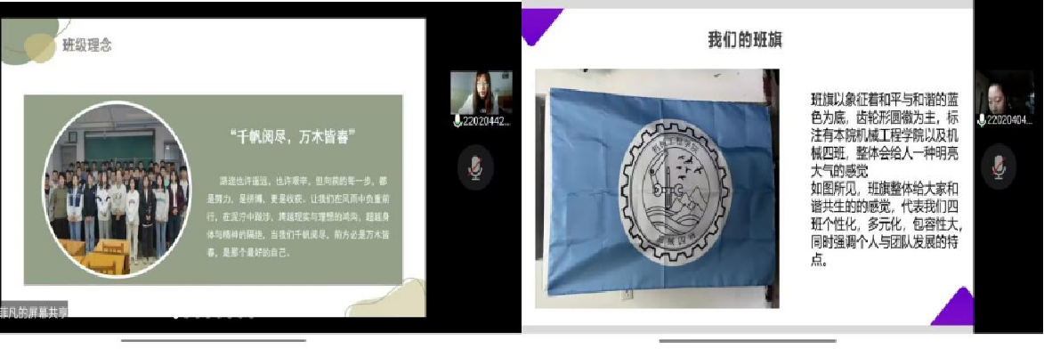 为加强我院班级规划建设,推动形成良好班风、学风,打造特色班级,学院于2022年11月29日在线举办了“梦想班级规划设计大赛”。院团委书记王瑾老师出席大赛,15个参赛班级进行了评比展示。