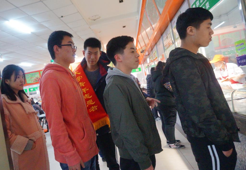 在就餐时间,志愿者们会有序地组织大家排队,避免因人多而造成冲突与混乱。在志愿者的帮助下,食堂阿姨们减轻了大量的负担,使食堂在一种井然有序的环境中。尽管大部分同学都已经在用餐了,但是志愿者们仍旧坚守在自己的岗位上努力为同学们创造良好和谐的用餐氛围,他们用自己的实际行动传承了雷锋精神。