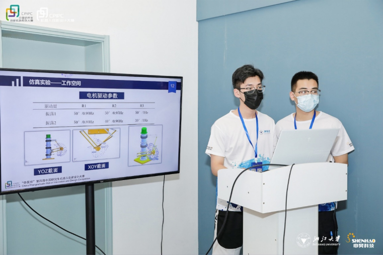 “申昊杯”第四届中国研究生机器人创新设计大赛由浙江大学承办,本届大赛坚持面向世界科技前沿、面向经济主战场、面向国家重大需求、面向人民生命健康。大赛分为仿真组、部件组、集成组、医疗健康专项组,重点考核研究生对社会需求的洞察能力、创新性设计和关键技术实现等能力,提升研究生教学与科研创新实践水平,促进机器人产业的发展。大赛2022年4月份启动,共收到来自174所高校和科研院所研究生队伍提交的833个作品。经评委初评,共有201支队伍进入决赛。8月25日-26日大赛决赛在杭州拱墅区运河文化发布中心采用线下线上相结合的方式举行。决赛主要包括专家现场评审和项目答辩两个环节。首先由评审专家到展区对作品进行现场评审,然后各组成员通过PPT进行作品展示,结合项目自身的创新性、先进性、实用性等特点进行答辩陈述。评委们在听取汇报后,围绕作品进行了多维度的点评。