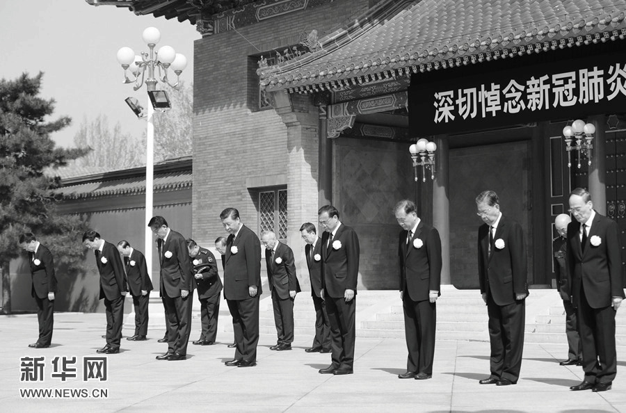 10时整,防空警报鸣响,习近平等向新冠肺炎疫情牺牲烈士和逝世同胞默哀。