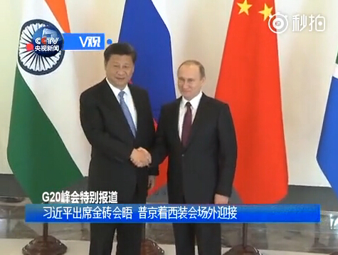 央视新闻:【习近平出席金砖会晤 普京着西装会场外迎接】当地时间15日,国家主席习近平在土耳其安塔利亚出席金砖国家领导人非正式会晤。习主席抵达会场时,普京热情迎接,两人微笑握手一同步入会场。