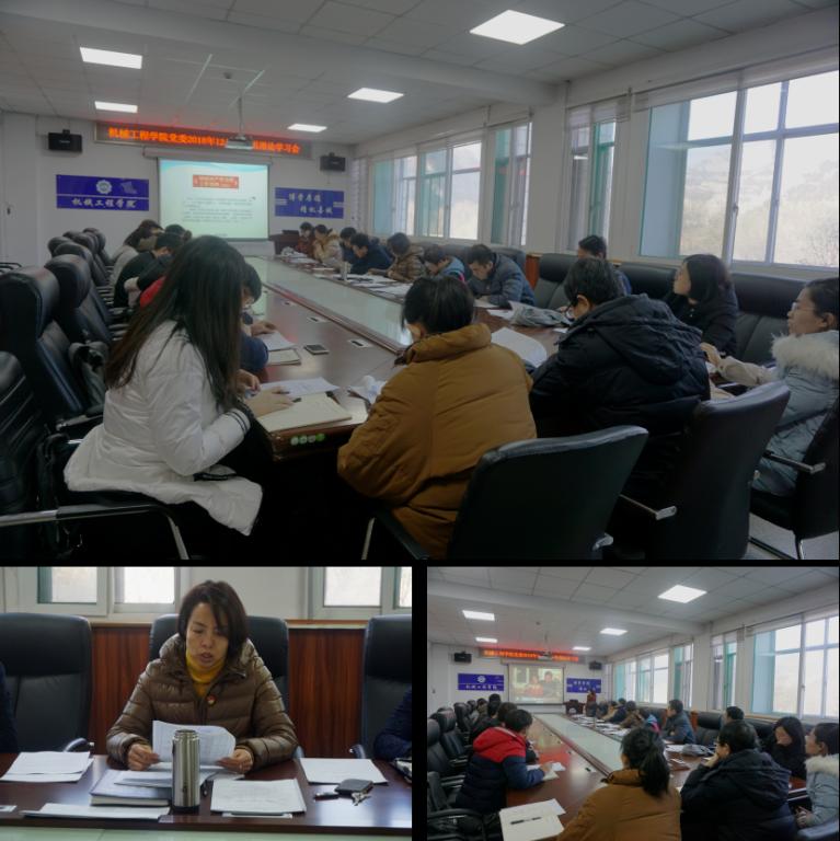 2018年12月17日11:00机械工程学院党委在德怀楼410会议室召开中心组理论学习会,院党委委员、院领导、全体科级以上干部、各党支部书记及全体辅导员参加了本次会议,院党委书记张清老师主持了本次会议。