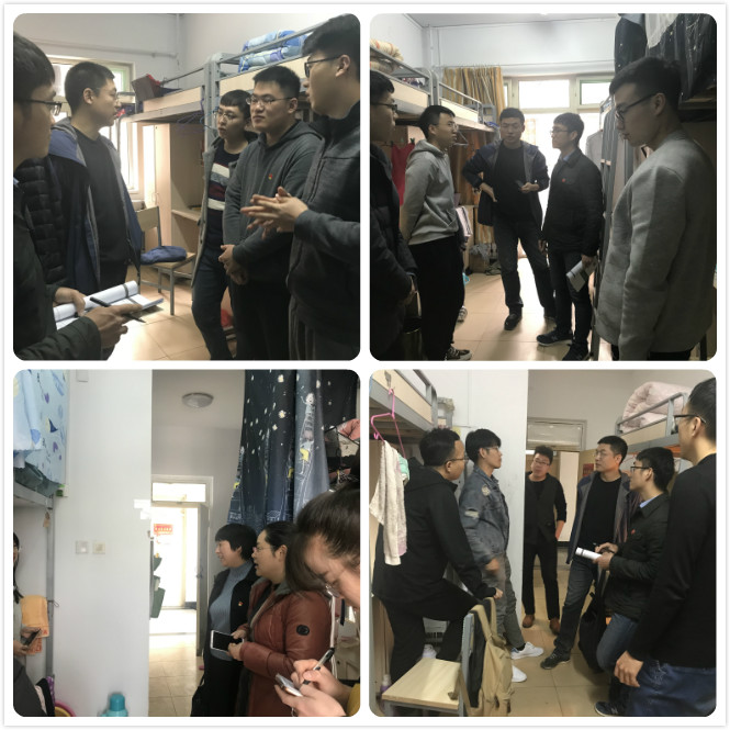 为深入学习贯彻习近平总书记在庆祝改革开放40周年大会上的重要讲话精神、全国教育大会上的讲话精神、视察山西重要讲话精神,推进学院“改革创新、奋发有为”大讨论方案有效实施,以高标准的党建工作引领学院各项工作的蓬勃发展,2019年4月8日中午12:00,在文瀛12宿舍楼中对机械工程学院研一学生开展走访学生宿舍活动,机械工程研究生第三党支部的支部委员协同现代加工理论及技术教工党支部秦慧斌老师、赵韡老师等,深入了解学生思想状态、学习生活状况。