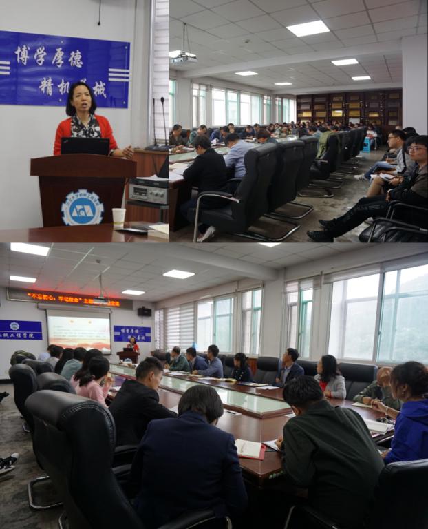 为深入学习和深刻领会“不忘初心、牢记使命”主题教育的重大意义,切实唤醒党员干部的模范榜样意识,激发学院师生干事创业奋勇争先的热情,机械工程学院党委于9月20日下午4:30在学院410会议室召开“不忘初心、牢记使命”专题党课,本次党课由院党委书记张清老师主讲。院党委委员、院领导、全体科级以上干部、党支部书记、全体辅导员和部分党员骨干参加了本次党课学习。