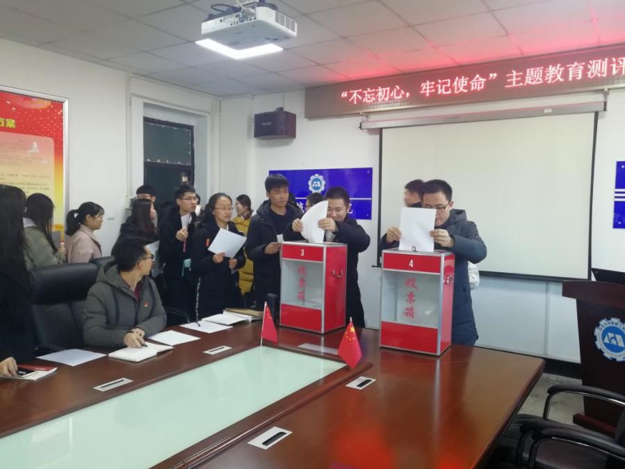 会议伊始,院党委书记张清同志就学院党委“不忘初心、牢记使命”主题教育推进情况作了详细汇报,张书记指出,学院党委严格按照主题教育要求,按时按质按量完成了所有任务要求及环节步骤,通过主题学习会的开展增强了党员的理论水平;通过承诺践诺活动、主题党日活动以及警示教育等相关活动的开展,促进了党员先锋模范作用的发挥;通过领导干部专题组织生活会,切实唤醒了党员干部的责任担当意识;通过多种形式开展调查研究,找准了制约学院发展的顽瘴痼疾,明晰了学院各项工作发展任务;通过开展专项整治工作,解决了群众急需、急盼、急忧的实际问题。随后,张书记要求参加测评的同志根据学院主题教育开展情况进行如实评定。
