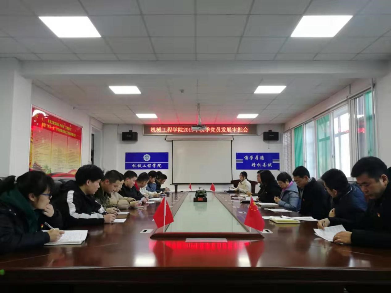 为确保党员发展质量,2019年12月27日上午9:00,机械工程学院党委2019年秋季党员发展审批会在德怀楼410顺利举行,出席本次会议的有院党委委员、教工党支部书记及各学生党支部书记。本次会议由院党委书记张清同志主持。