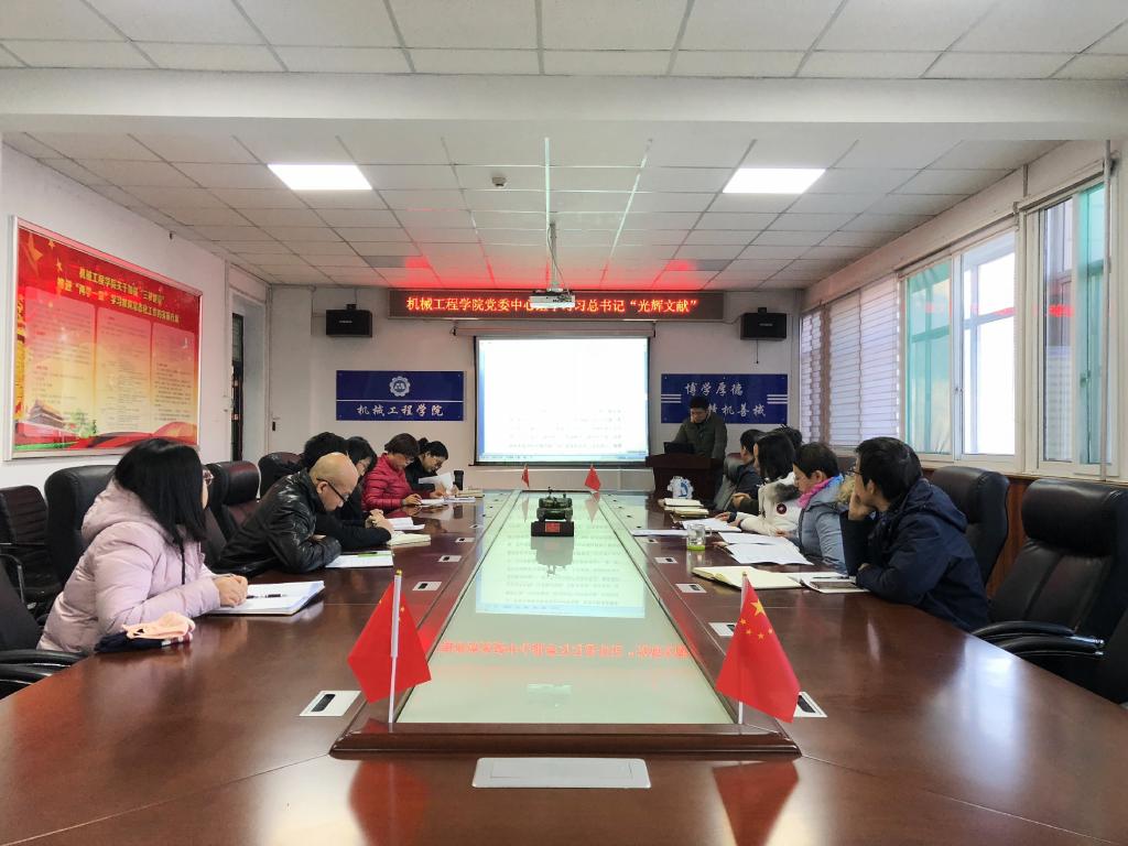 2019年12月30日上午10点,机械工程学院党委在德怀楼410会议室组织召开了党委中心组理论学习会,专题学习习近平总书记“三篇光辉文献”。全体科级以上干部参加了本次学习会,会议由院党委书记张清同志主持。