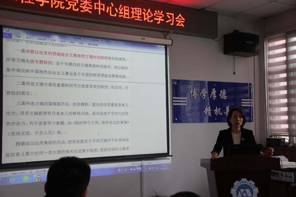 张书记强调,院党委与各支部要将《习近平谈治国理政》第三卷同第一卷、第二卷作为一个整体来学习,将学习宣传贯彻《习近平谈治国理政》第三卷作为当前和今后一个时期的重大政治任务,精心组织,周密安排,读原著、学原文、悟原理,通过个人自学、集中学习、讲党课等方式,推动习近平新时代中国特色社会主义思想更加深入人心。全院上下要以“功成不必在我”的精神境界和“功成必定有我”的历史担当,全面推进学院的各项中心工作。