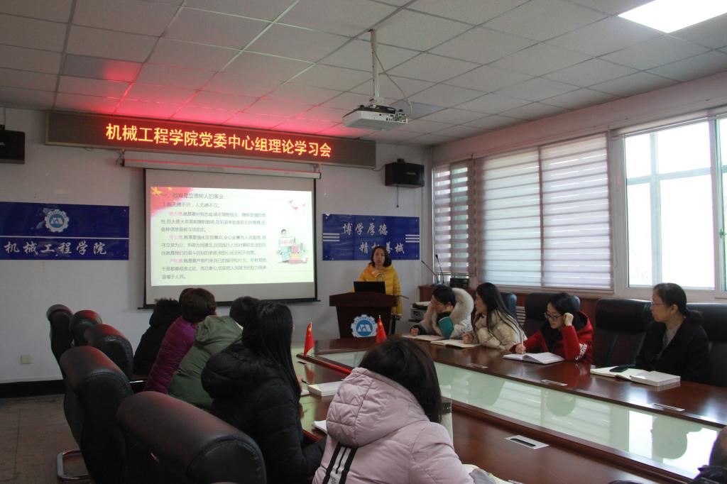 为认真学习习近平总书记关于教育的重要论述,贯彻落实好学校“三全育人”综合改革推进大会会议精神,切实增强工作政治自觉、思想自觉、行动自觉,机械工程学院党委于2020年12月23日下午15:00在德怀楼410会议室召开了中心组理论学习会。全体院领导、科级以上干部、辅导员、党支部书记及支委参加了本次学习会。会议由院党委书记张清主持。