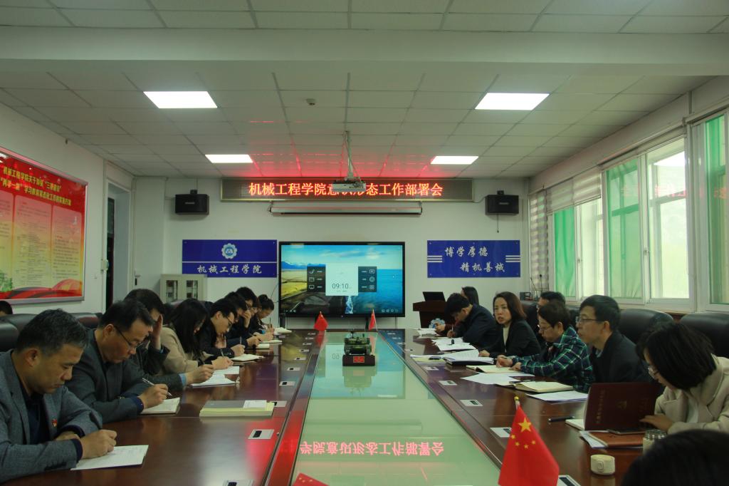 2021年4月9日上午9:00,机械工程学院在德怀楼410会议室召开了意识形态工作部署会。学院领导、党委委员、支部书记、系主任、科级以上干部及全体辅导员参加了本次会议。会议由学院党委书记张清主持。