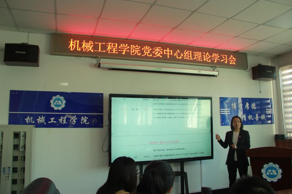 为深入推进党史学习教育,引导全院师生党员学史明理、学史增信、学史崇德、学史力行,机械工程学院党委于2021年4月13日下午16:00在德怀楼410会议室召开了中心组理论学习会暨学院领导讲党课活动。全体院领导、党委委员、各党支部书记、科级以上干部及辅导员参加了本次会议。学习会通过院党委书记张清讲党课的形式开展。