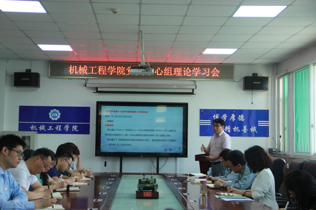 2021年6月1日下午15:00,机械工程学院党委在德怀楼410会议室召开中心组理论学习会暨学院领导讲党课活动,对党的十八大以来的历史展开了专题学习研讨。全体院领导、党委委员、各党支部书记、各系(部)主任、科级以上干部及辅导员参加了本次会议。学习会以副院长曾志强讲党课的形式开展。