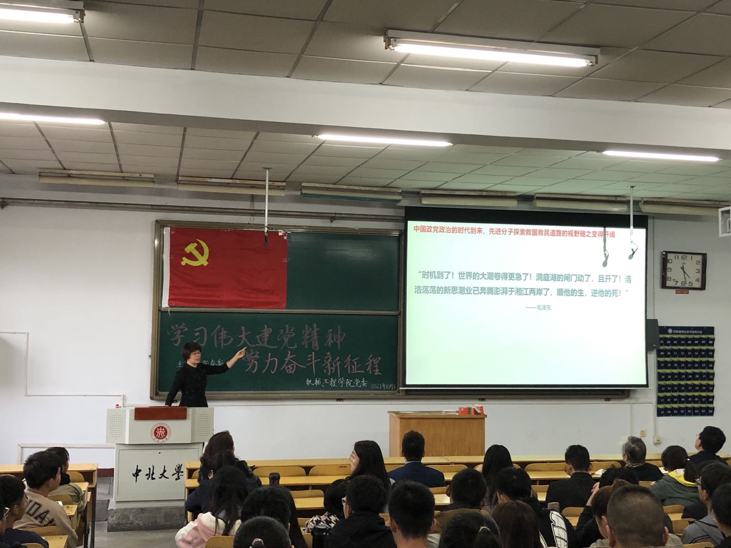 2021年10月8日下午,机械工程学院党委在08301H召开了以“学习伟大建党精神,努力奋斗新征程”为主题的第四轮党史学习教育宣讲报告会。报告会邀请了校党史学习教育宣讲团成员、马克思主义学院教师张春秀主讲。学院全体师生党员及部分发展对象和积极分子参加了本次会议。会议由学院党委书记张清主持。