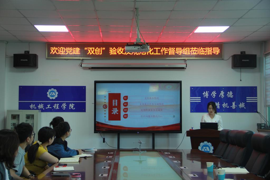 2022年6月1日上午8:30,学校第二批校级标杆党委和样板党支部培育创建验收组和学生党员发展规范化建设专项行动督导组第一组组长机电工程学院党委书记罗建国、成员高宏图、杨宝东、张凤林、陈淑霞、姚瑶一行6人莅临我院,就机械设计制造及其自动化专业第一学生党支部和研究生第三党支部两个样板党支部培育创建工作进行验收,就学生党员发展规范化建设情况进行督导。学院党委书记张清、学生党支部书记和党建辅导员参加了本次验收、督导工作。