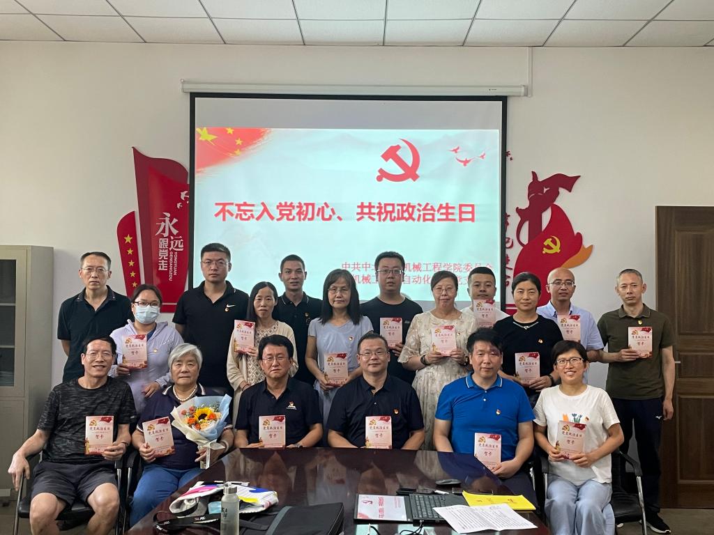 2022年7月7日下午15:00,机械工程与自动化教工党支部全体党员齐聚工字楼233,开展“立足岗位、履职尽责”主题党日暨党员集体过“政治生日”活动。活动由支部副书记赵丽琴主持,支部全体党员参加。活动特别邀请了退休党员王爱玲老师和学院党委书记孙旭东参加。